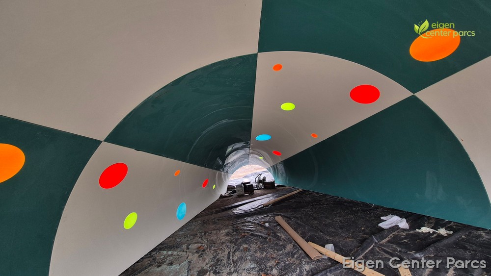 De glijbaan start op een hoogte van 5 meter en met verschillende daglichteffecten,kleurrijke ringen en bubbeleffecten in de cone is dit echt een hele mooie toevoeging voor dit park!