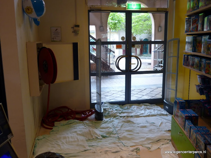 de winkel onder de uitkijk toren toys en gifts heeft waterschade opgelopen