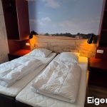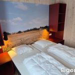 - 1 met 2 samenstaande eenpersoonsbedden, kussens en dekbedden
