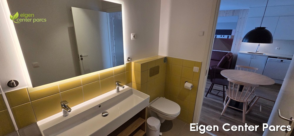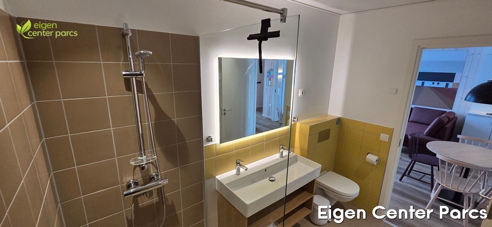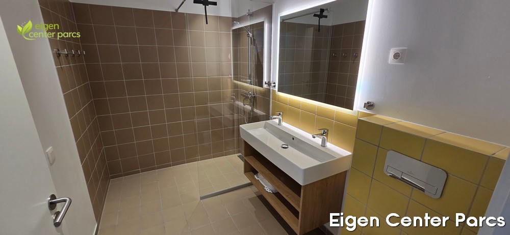 - 1 met douche, dubbele wastafel, toilet